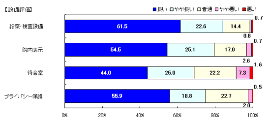 「総合評価」「他人に勧められるか」「技術への評価」「待ち時間への評価」は、2003年調査と2005年調査を比較するため両年の調査結果を提示しております。 |